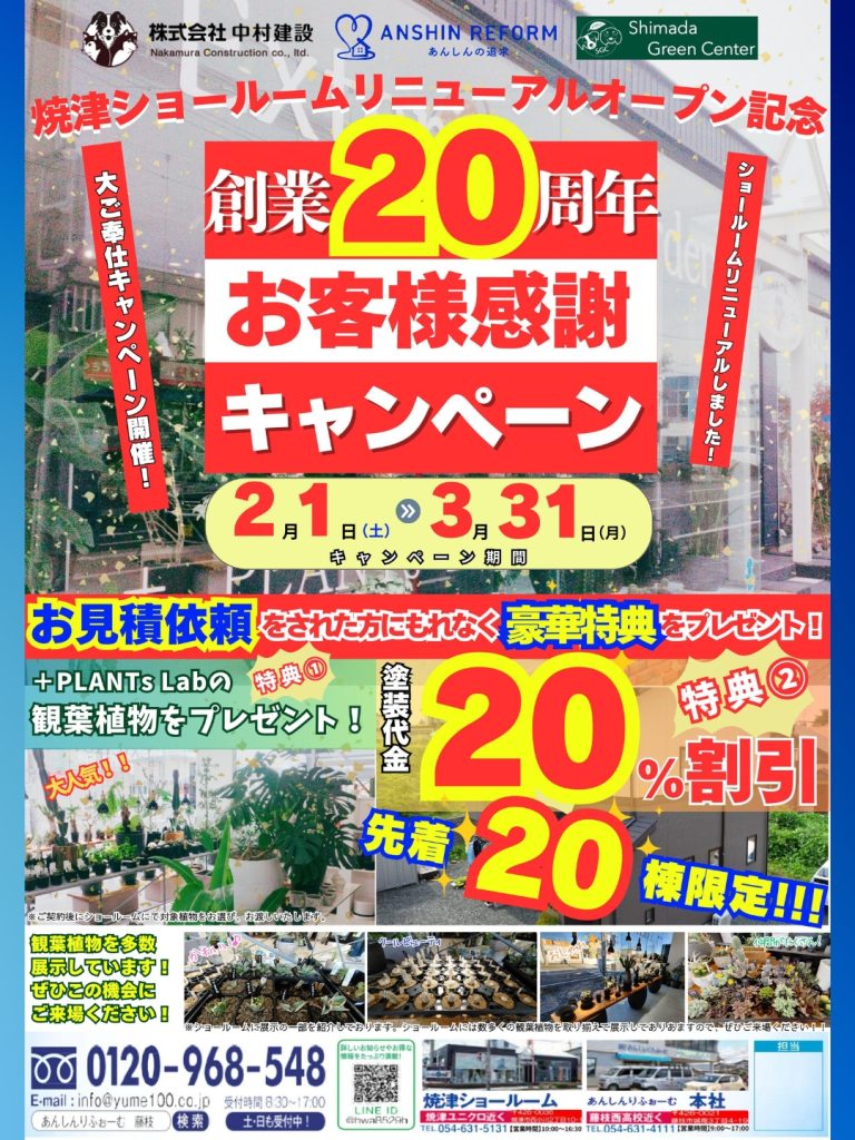 創業20周年お客様感謝キャンペーン【あんしんりふぉーむ焼津支店 リニューアルオープン!】